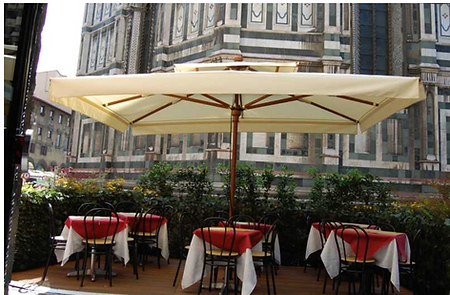 THIS PATENTED ANTI-WIND SYSTEM CONSISTS OF SIX OVERLAPPING FABRIC STRIPS. ALLOWING AIR TO FLOW THROUGH UN-INTERRUPTED AND IS INCREDIBLY STABLE IN STRONG WINDS. THIS KEEPS THE GENERAL AREA COOLER AS WELL, AND IS STILL A WATER REPELLANT UMBRELLA.